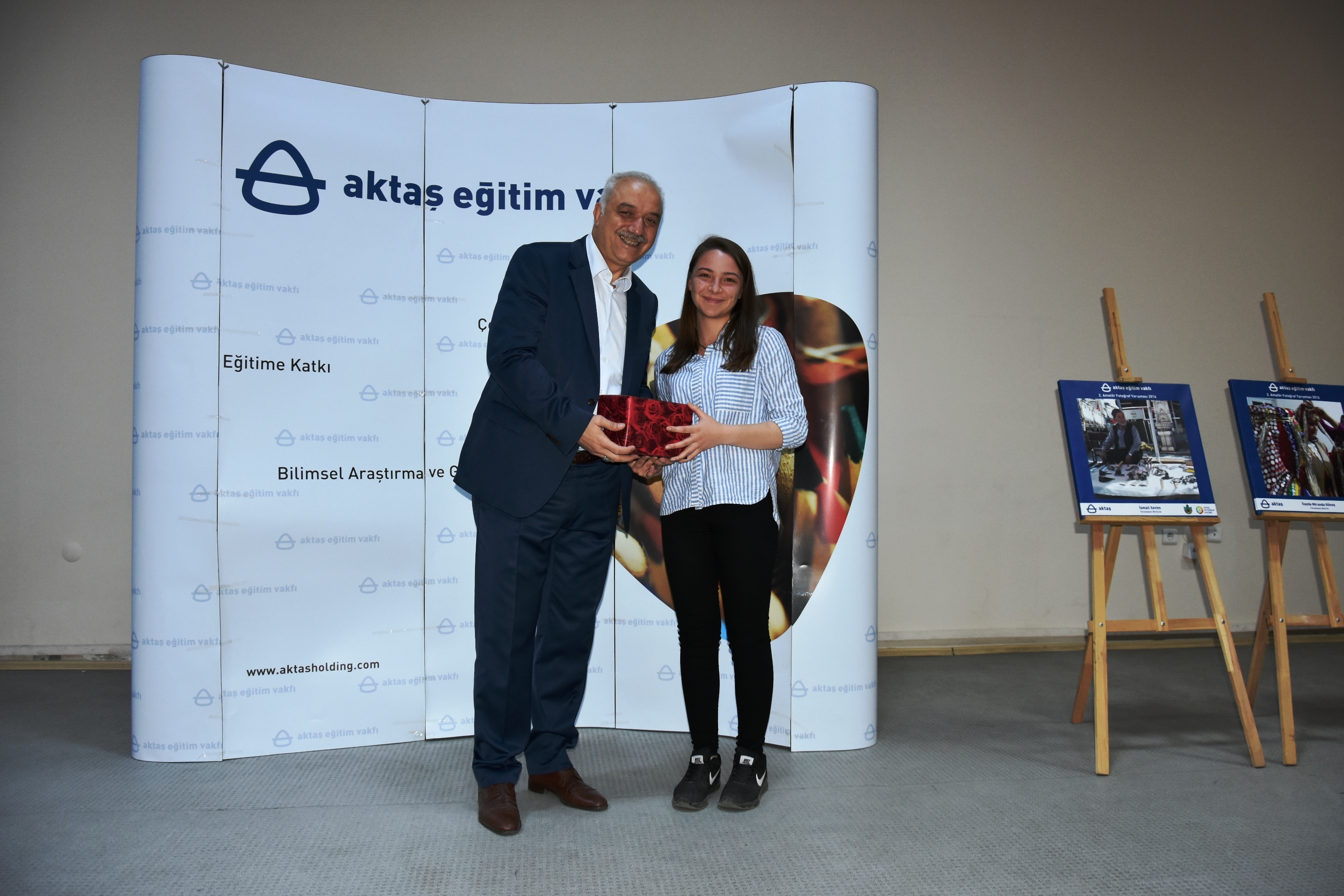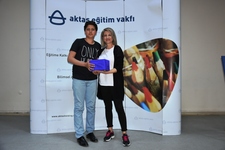 Yarışmada 2. sırayı elde eden İlayda Miranda Güneş, ödülünü Belediye Başkanı İrfan Tatlıoğlu'nun elinden alırken, yarışmanın birincisi İsmail Sevim de ödülünü, Aktaş Eğitim Vakfı Yönetim Kurulu Başkanı İlknur Aktaş'ın elinden teslim aldı.