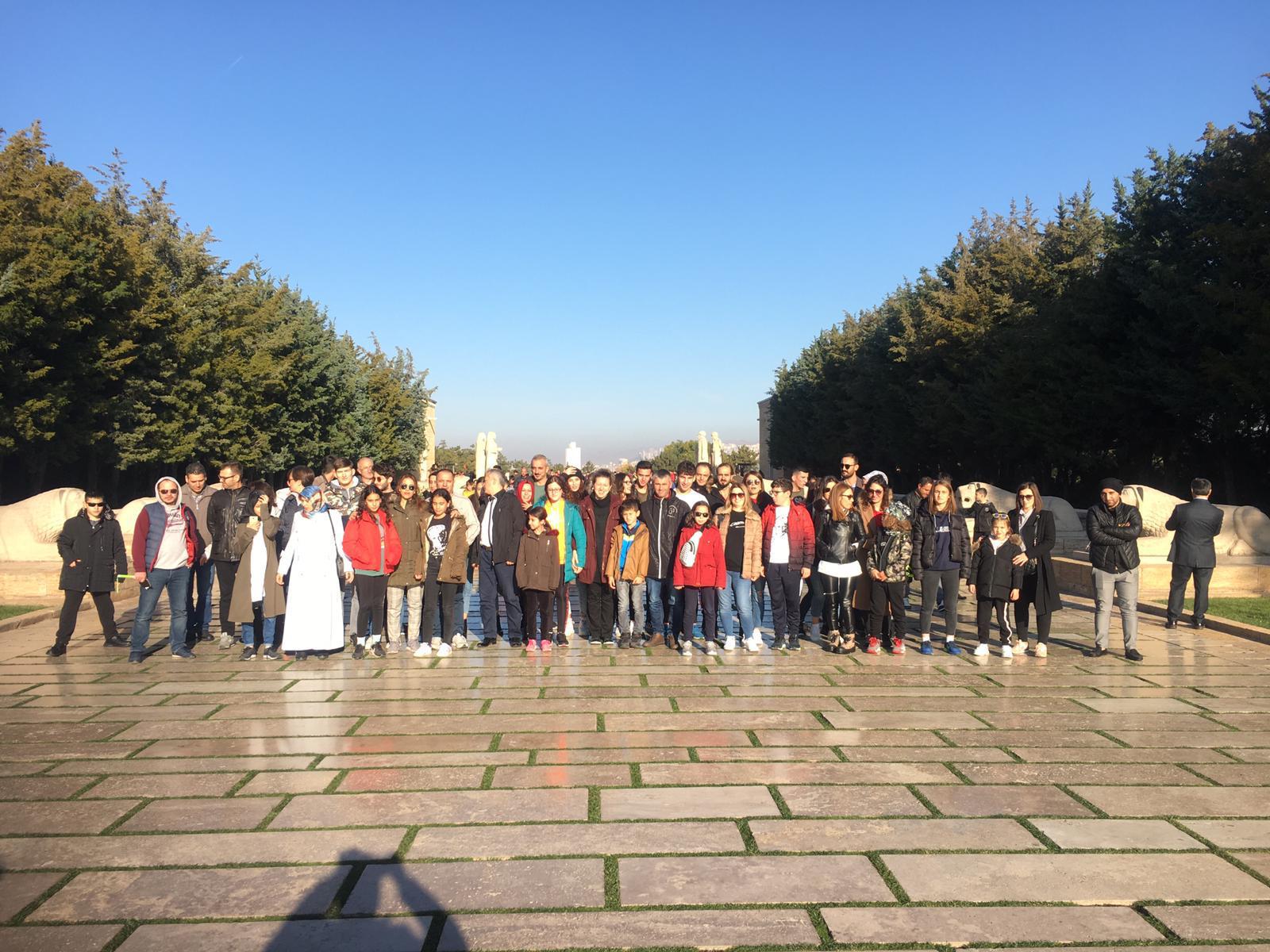 Aktaşlılar Anıtkabir ziyareti süresince bol bol fotoğraf da çekerken, Atatürk'ün mozolesine çiçekler bıraktı.